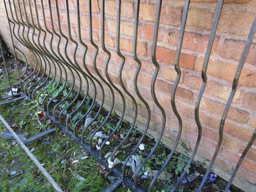A heavy wrought iron Juliet balcony railing