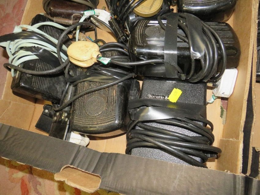 Two trays of assorted sewing machine pedals
