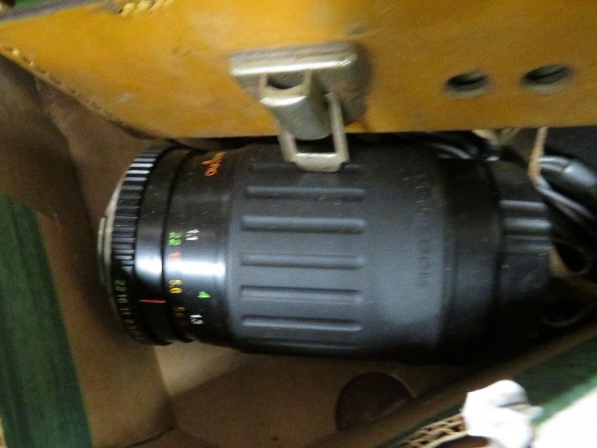 A box of mixed lenses and accessories