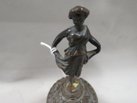 A Coalbrook style cast bell with figural handle and replacement clanger