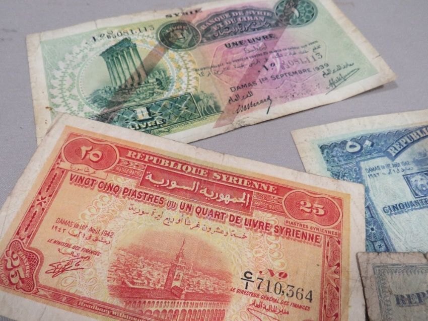 Vintage Syria banknotes, consists of 1 Livre 1939, 50 Piastres 1942, 25 Piastres 1942 and 4 Piastres 1942 and 1944