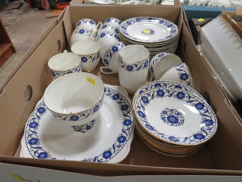 Three trays of ceramics to include Paragon Athena and Noritake