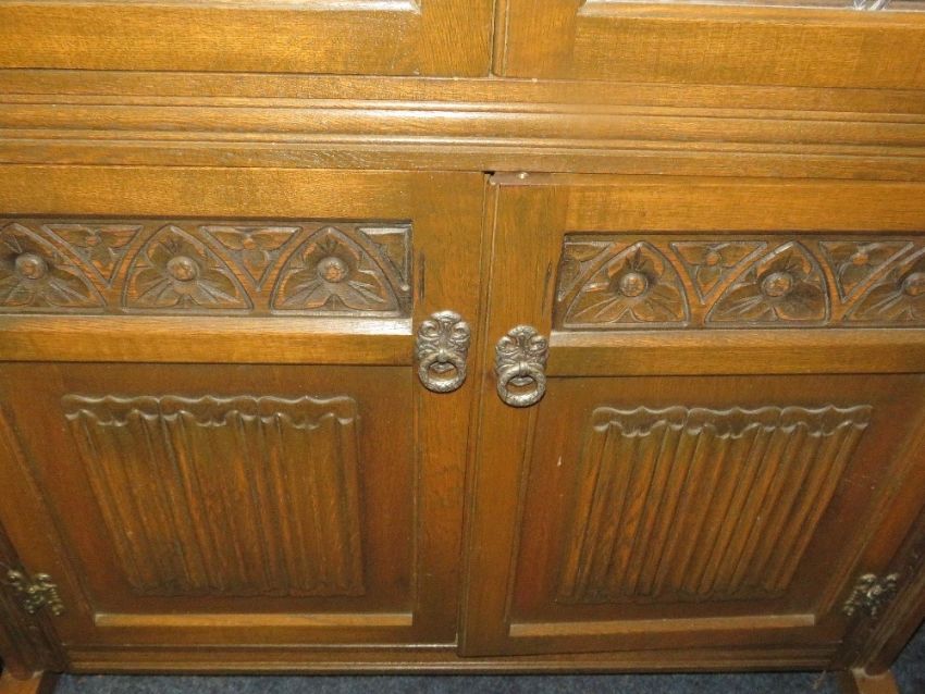 An oak old charm glazed leaded bookcase W 100 cm