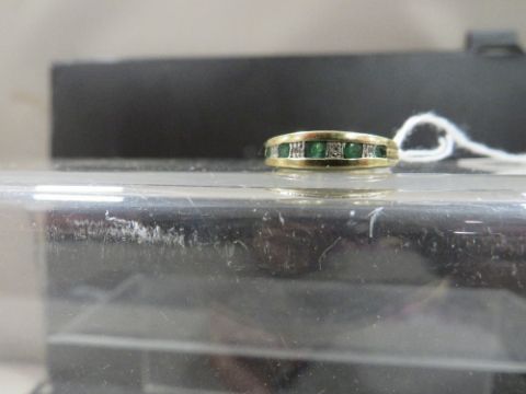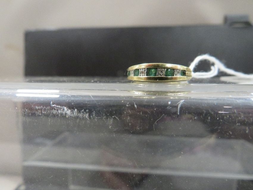 A hallmarked 9ct gold ring set with diamonds and emeralds, size L, weight approx 2.2 g