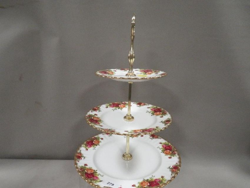A Royal Albert Old Country Roses triple cake stand
