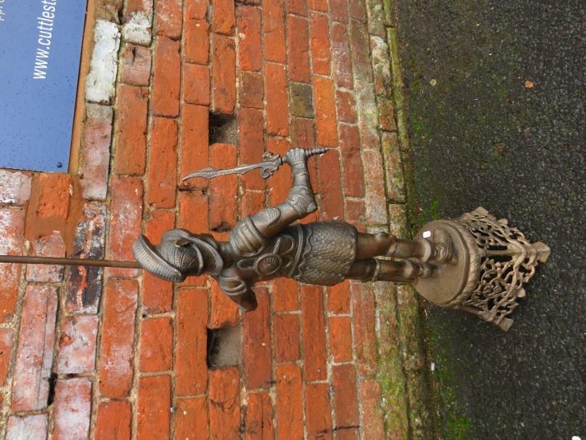 A tall cast metal figure of a continental soldier