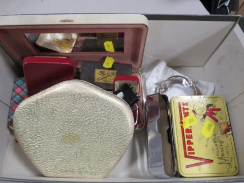 A tray of assorted collectables to include costume jewellery