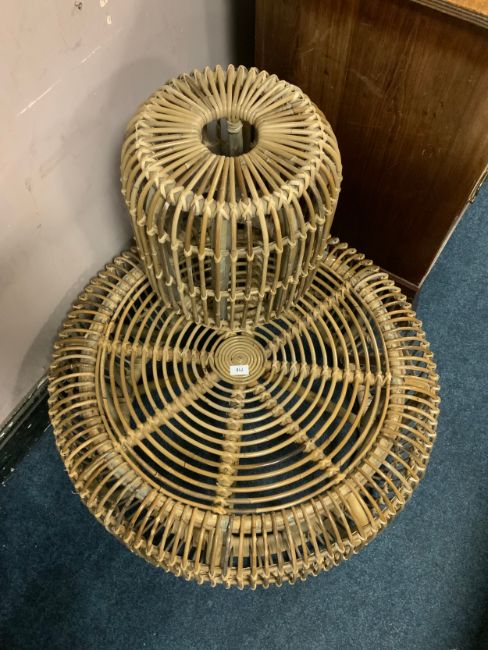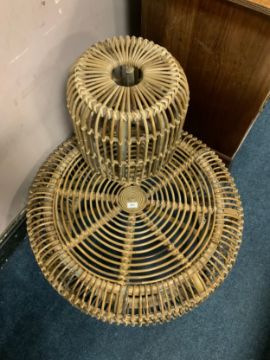 A modern wicker lobster pot type coffee table Dia. 82 cm and stool (2)
