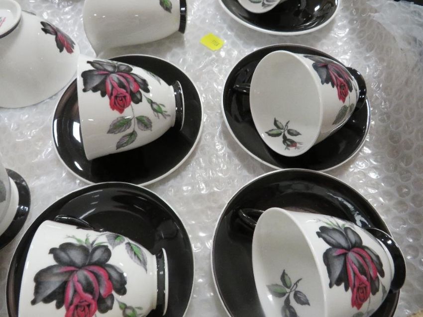 A Royal Albert Masquerade coffee set, coffee pot, milk and sugar, cake plate, 6 cups/saucers