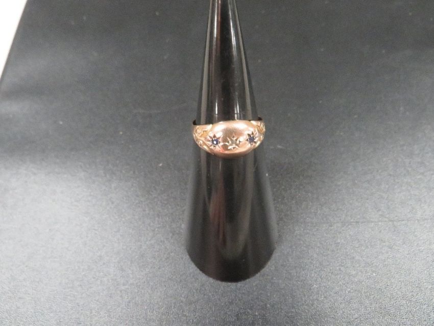 A Chester hallmarked gypsy set diamond and sapphire ring approx. weight 2.2g