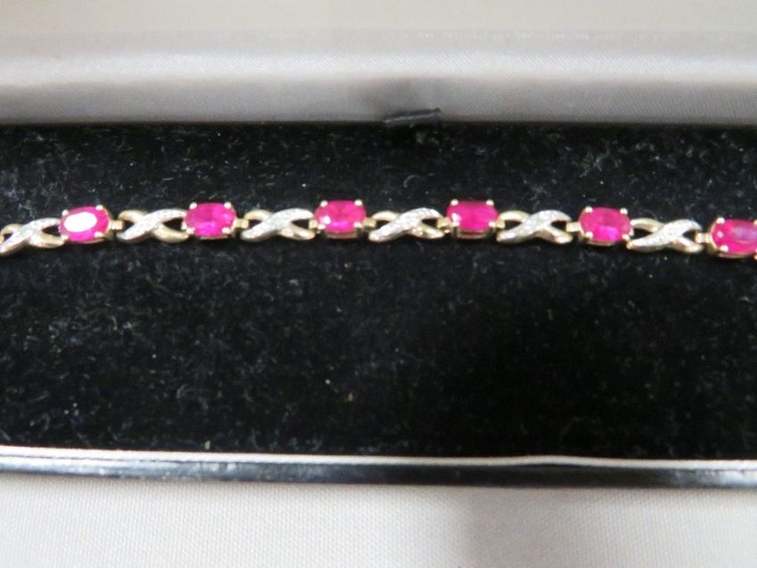 A hallmarked 9 carat gold ruby and diamond bracelet approx. weight 4.1g