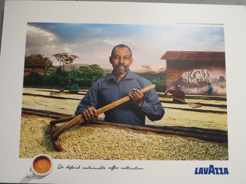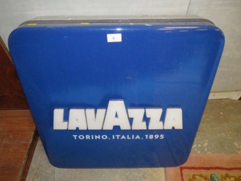 A LAVAZZA perspex illuminating advertising sign - not tested, together with two advertising prints