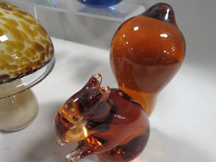 Five assorted glass paperweights to include a snail, Wedgwood examples etc