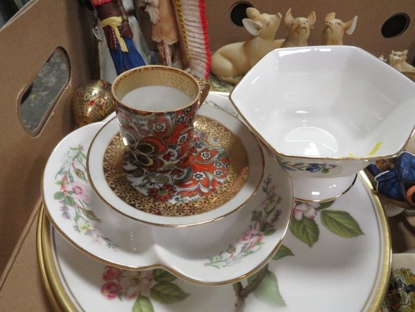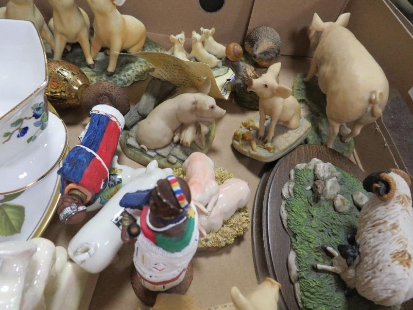 A tray of assorted ceramics etc to include Border Fine Arts figures