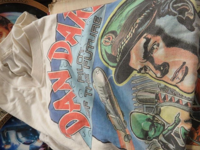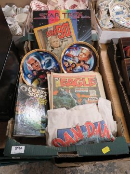 A selection of Sci-Fi collectables to include various comics,  Joe 90 painting book, Star Trek LP and collectors plates - talking option - untested poss in need of replacement batteries