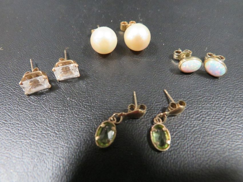 Four pairs of 9ct gold mounted earrings