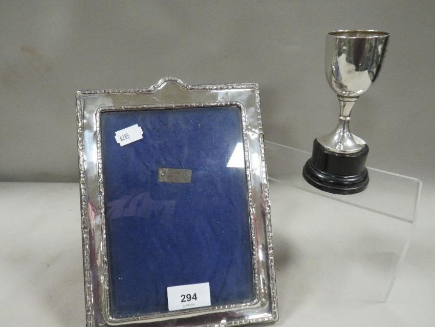A silver hallmarked photo frame and trophy