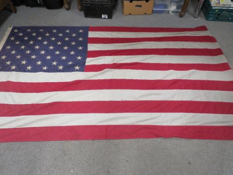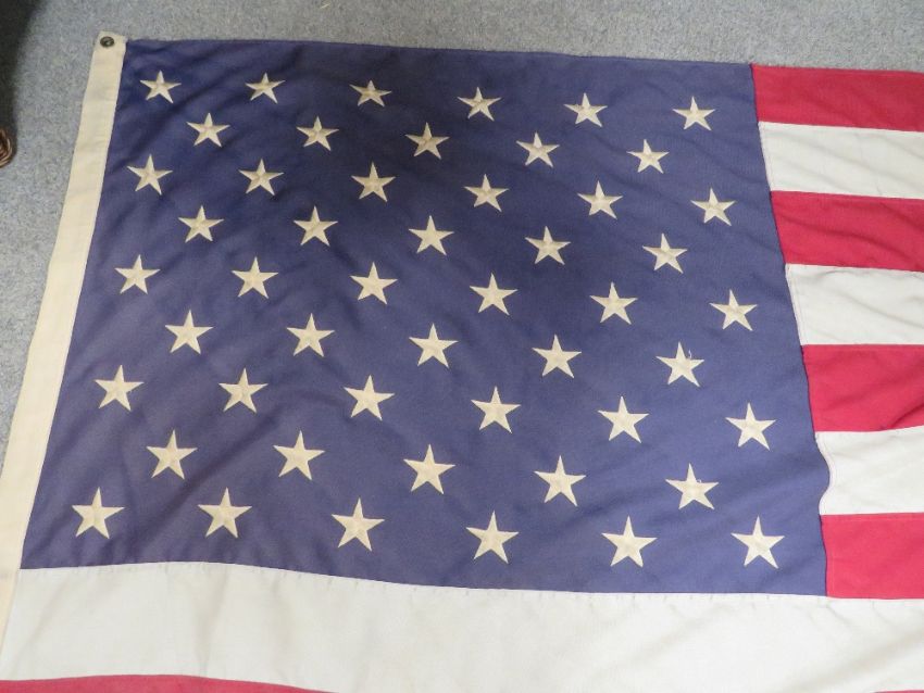 A large vintage U.S.A. stars & stripes flag having 50 sewn stars, approx 8ft x 5ft