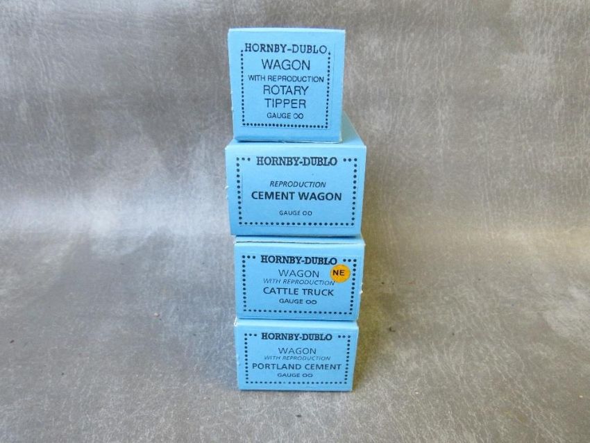 FOUR BOXED OO GAUGE HORNBY DUBLO PIECES OF ROLLING STOCK, Rotary tipper, cement wagon, cattle truck, Portland cement together with twenty two unboxed pieces of rolling stock