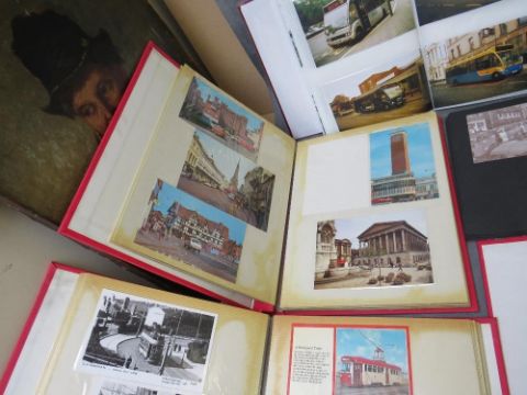 SEVEN ALBUMS OF POSTCARDS / PHOTOGRAPHS OF BUSES, coaches, trams, trolley buses and trains, to include many vintage examples