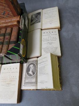 A TRAY OF 32 ANTIQUARIAN POETRY BOOKS, to include Apollo Press late 18th ventury, Samuel Johnson. Cookes pocket edition etc (32)