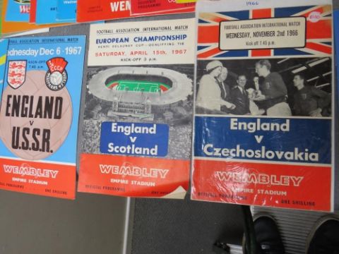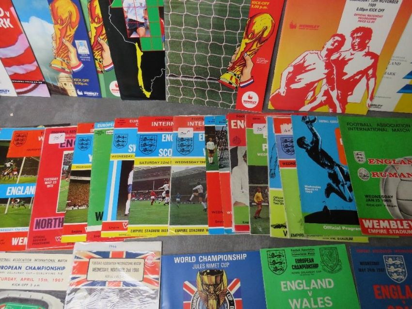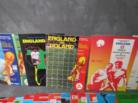 A COLLECTION OF OVER ONE HUNDRED ENGLAND FOOTBALL PROGRAMMES THROGUH THE YEARS, form 1966 to the ealry 990s to include England v Wet Germany 1966 World Cup souvenir programme, 1966 England v Czechoslovakia, 1966 England v Wales European championship, England v Scotland European Championship etc.