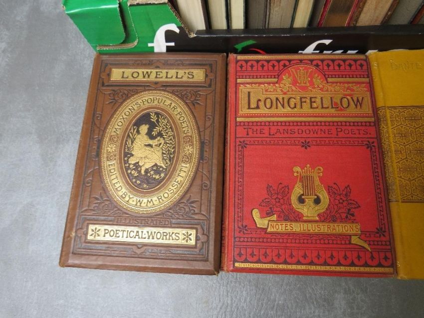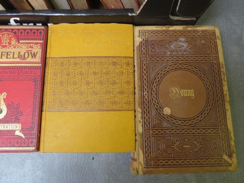 A TRAY OF ANTIQUE BOOKS MAINLY POETRY / PLAYS, 19th and early 20th century (25)
