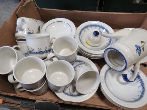 Two trays of patterned tea/dinner ware