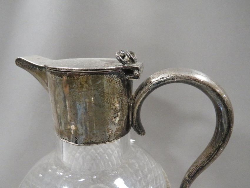A hallmarked silver topped glass ewer engraved Sutton-On-Sea August 1897