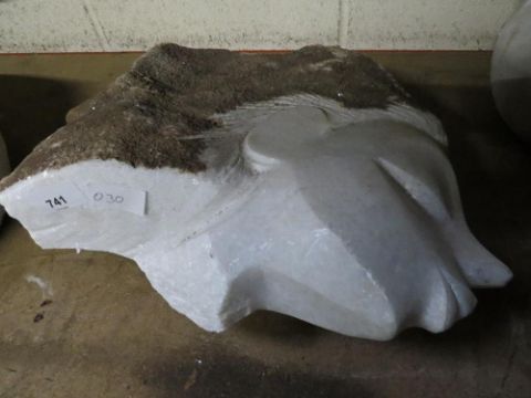 A white marble quartz type statue of a tribal woman's head - H 50 cm, W 40 cm