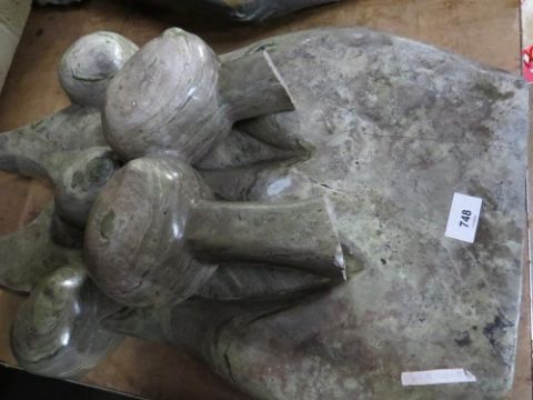 A stone type flat backed statue depicting five people A/F - H 80 cm, W 40 cm