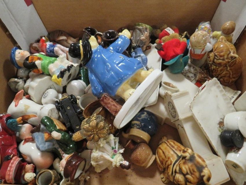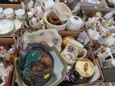 Six trays of assorted ceramics to include crested ware