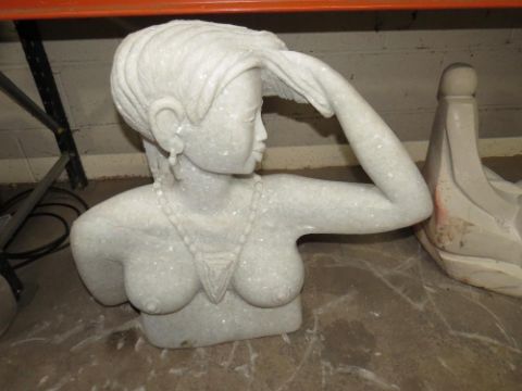 A large white marble quartz type bust of a lady - H 71 cm, W 70 cm