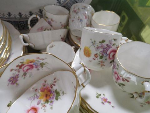 A tray of assorted ceramics to include Royal Crown Derby Posies tea/dinnerware