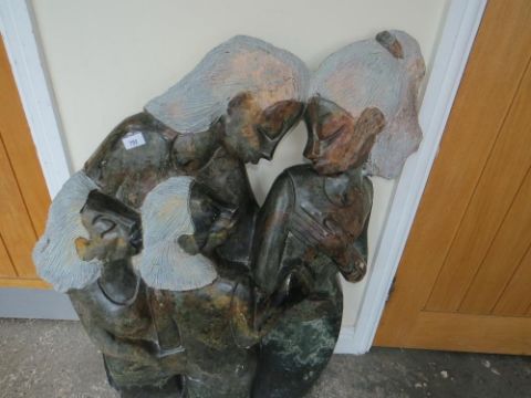 A stone type statue of four females, H 107 cm, W 70 cm