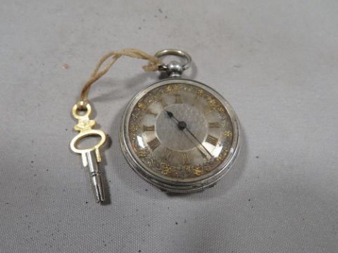 A 19th century ladies silver cased pocket watch with gold and silver dial