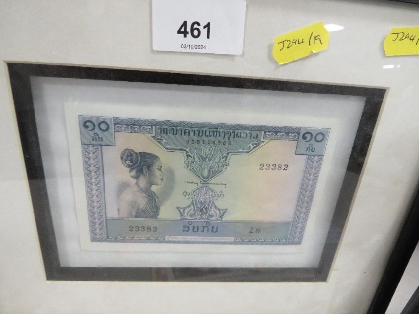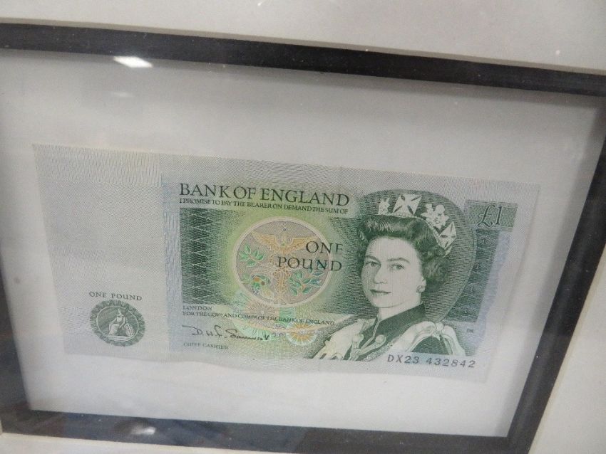 A collection of world banknotes, loose and in frames, to include uncirculated examples