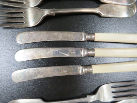 A pair of Georgian hallmarked silver sugar tongs together with silver plated flatware