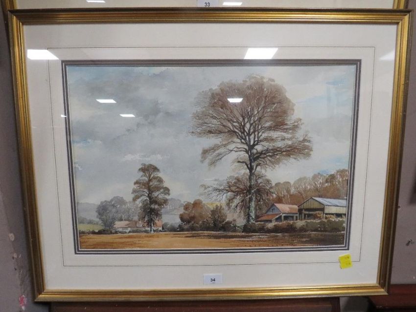 A Sidney Perrin watercolor of a country landscape