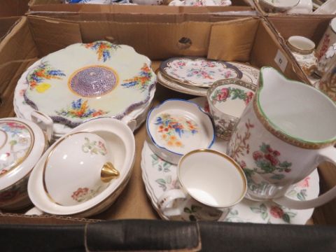 Four trays of assorted ceramics to include Royal Crown Derby, Royal Albert, Royal Doulton etc
