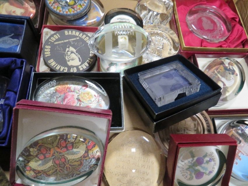 Two trays of circa fifty different paperweights