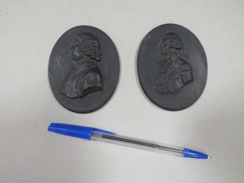 Two Wedgwood basalt style plaques of Josiah Wedgwood and Nelson