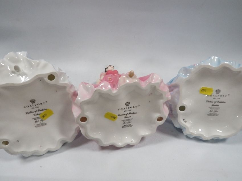 Three Coalport figurines comprising 'Diane' - foot chipped, Victoria' and Jessica