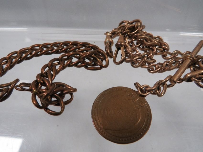 A gold plated Albert chain and t-bar plus another chain (2)