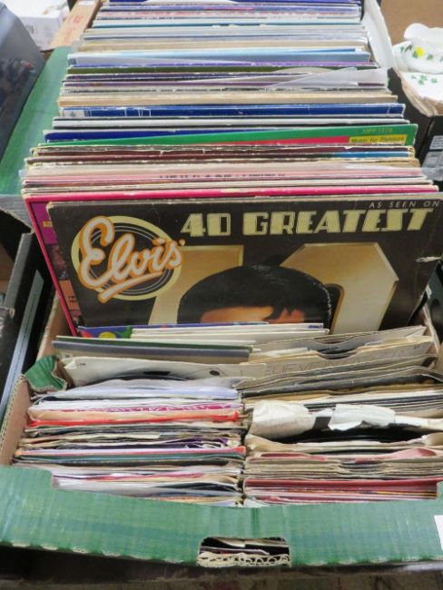 Over 100 LP and 12" single records, artists include Elvis Presley, Simple Minds etc., together with over 100 single records