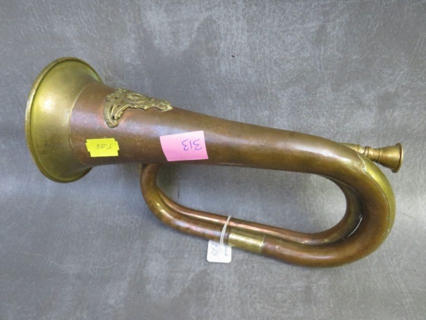TWO MILITARY BUGLES, one with Royal Artillery badge (2)