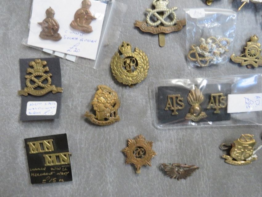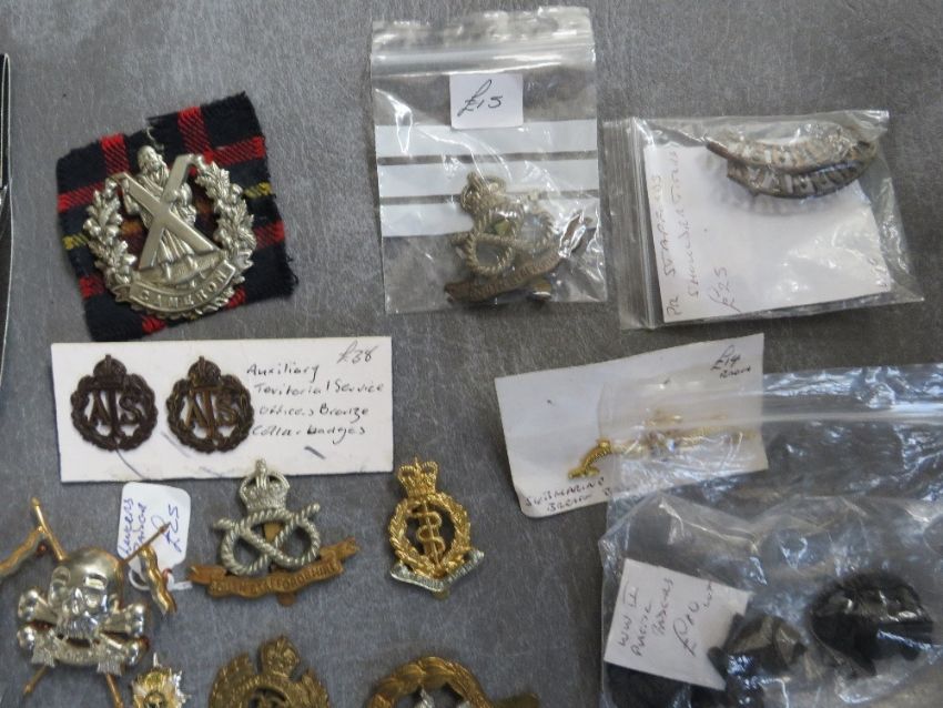 A COLLECTION OF MILITARY CAP AND OTHER BADGES, to include Lancers, RA, South Staffs, US types etc.