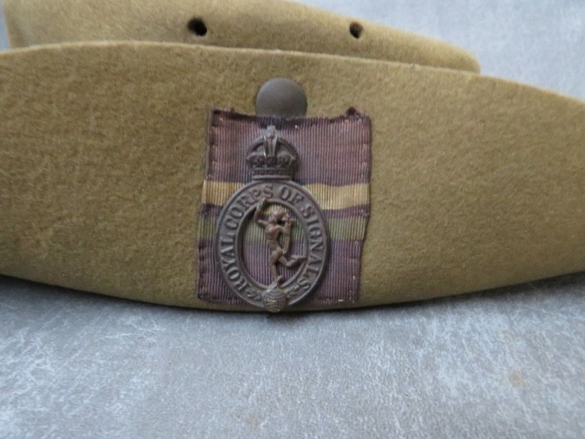 A WW2 SLOUCH HAT WITH ROYAL SIGNALS BADGE