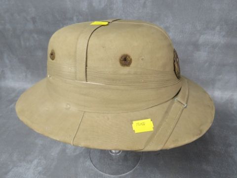 BRITISH WW2 R.A.F. PITH HELMET, badges to front, retailers label for G.C. Desa & Co.