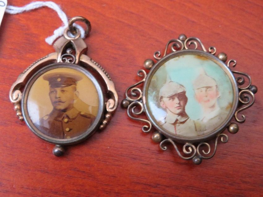 FOUR WWI GERMAN SWEETHEART PHOTOGRAPHIC BROOCHES / PENDANTS, all depicting soldiers in uniform (4)